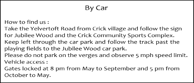 Free parking for cars is available at the entrance to Jubilee Wood and disabled access with suitable equipment.
