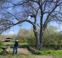 Our aerial tree surveying and maintenance is provided by tree surgeon Harry Mockett, removing hanging and dead wood from the top of the older ash trees for safety reasons.